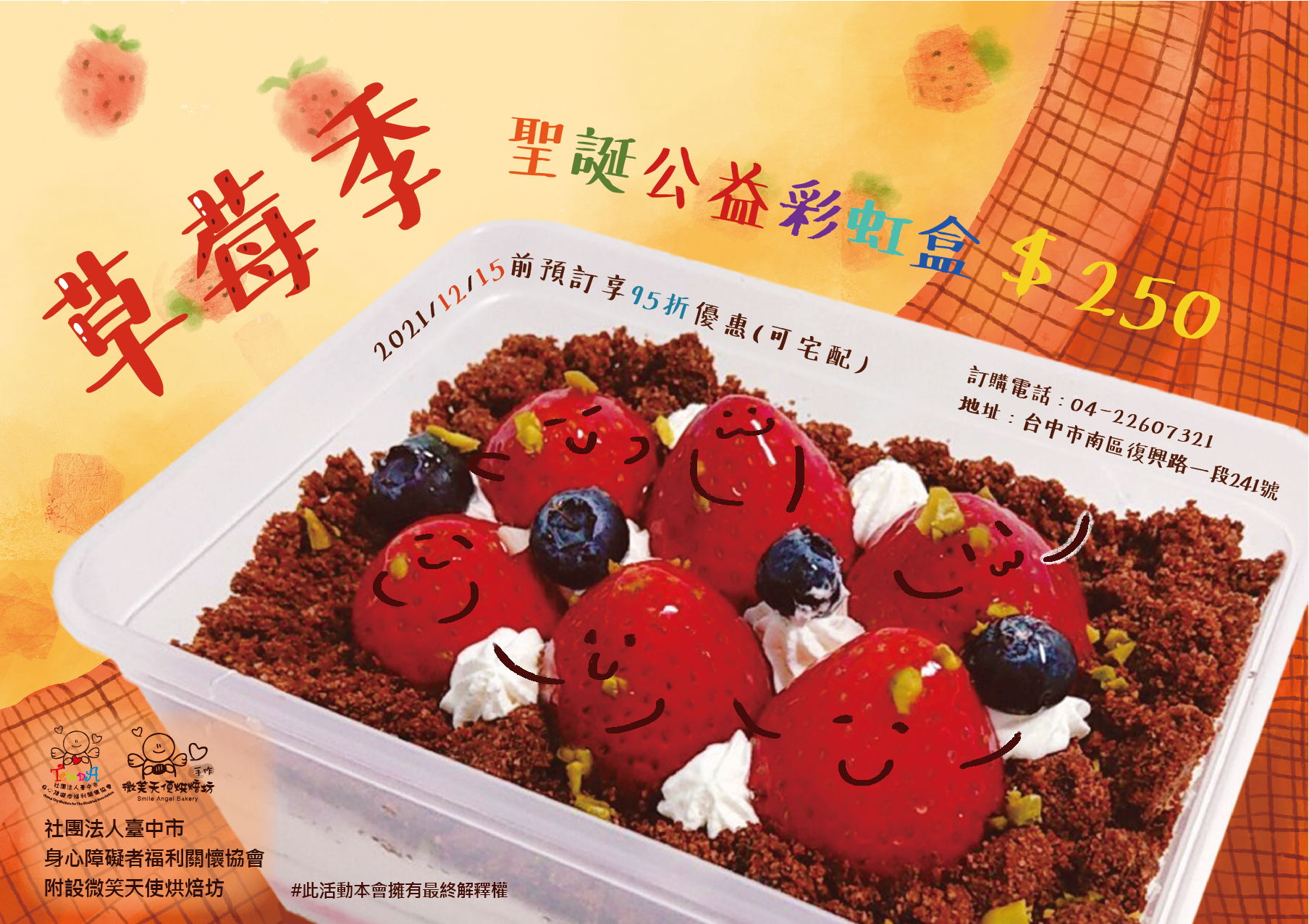 天使學員化身聖誕老公公,陪您過耶誕和草莓的季節~ 推出聖誕公益彩虹盒耶誕三重奏:嚴選北海道十勝生乳、三層繽紛蛋糕的視覺饗宴、新鮮草莓及藍莓,品嘗當季水果