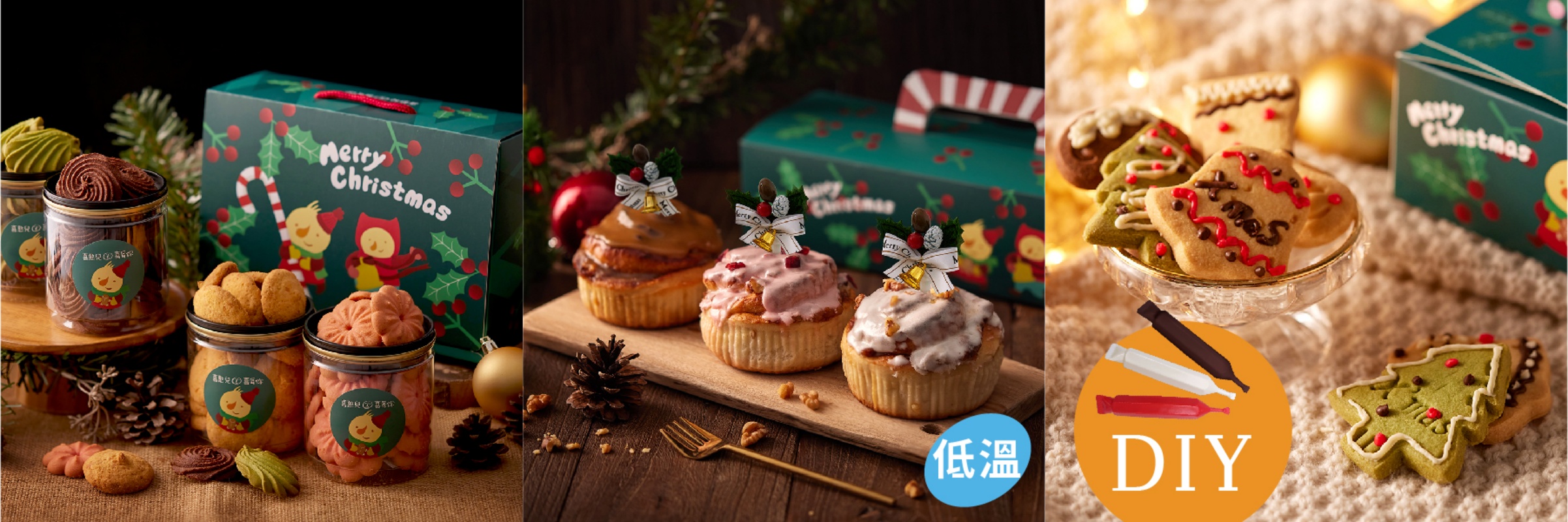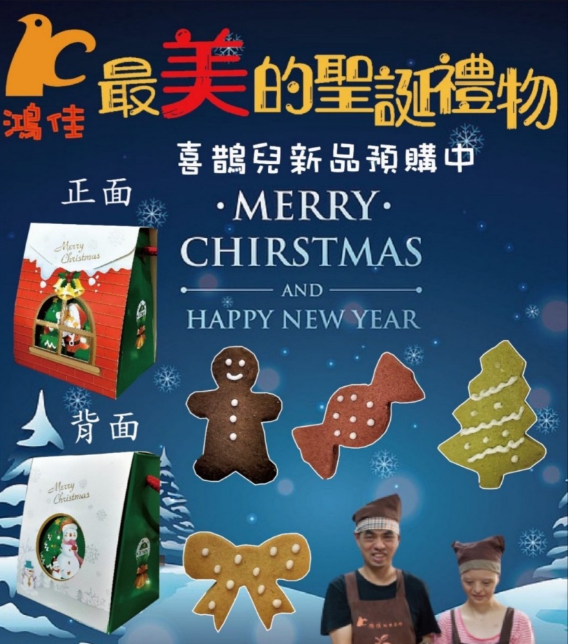 鴻佳喜鵲兒烘焙坊帶著小菁英首次推出聖誕造型餅乾:薑餅人可可餅乾、糖果紅麴餅乾、聖誕樹抹茶餅乾、蝴蝶結奶油餅乾