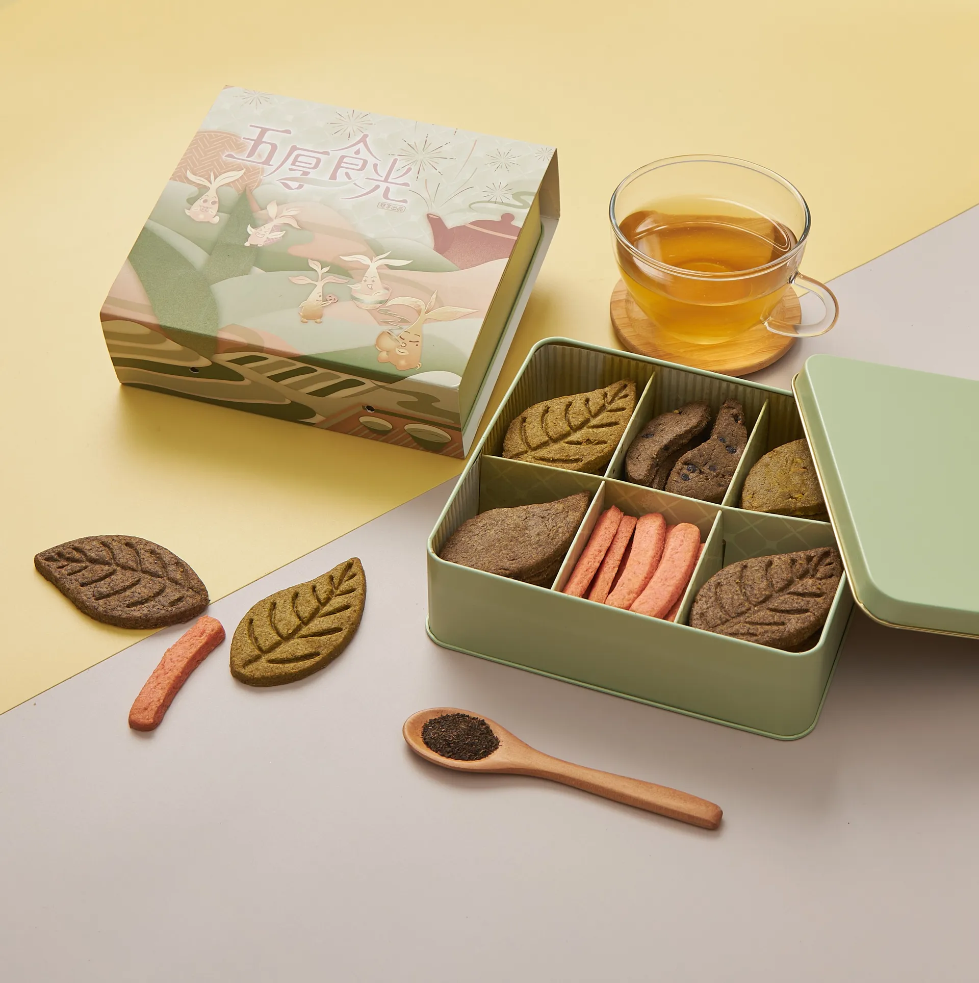 新北茶農產品,清香回甘的文山包種、春意盎然的碧螺春、甘醇渾厚的重焙鐵觀音、蜜韻交織的蜜香紅茶、優雅果香的東方美人共五款茶種為靈感