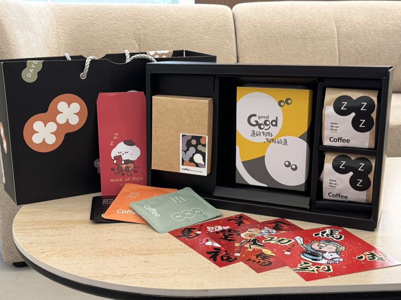 這是一款為「想送得有份量」準備的大禮盒,結合咖啡、茶、甜點與新年祝福